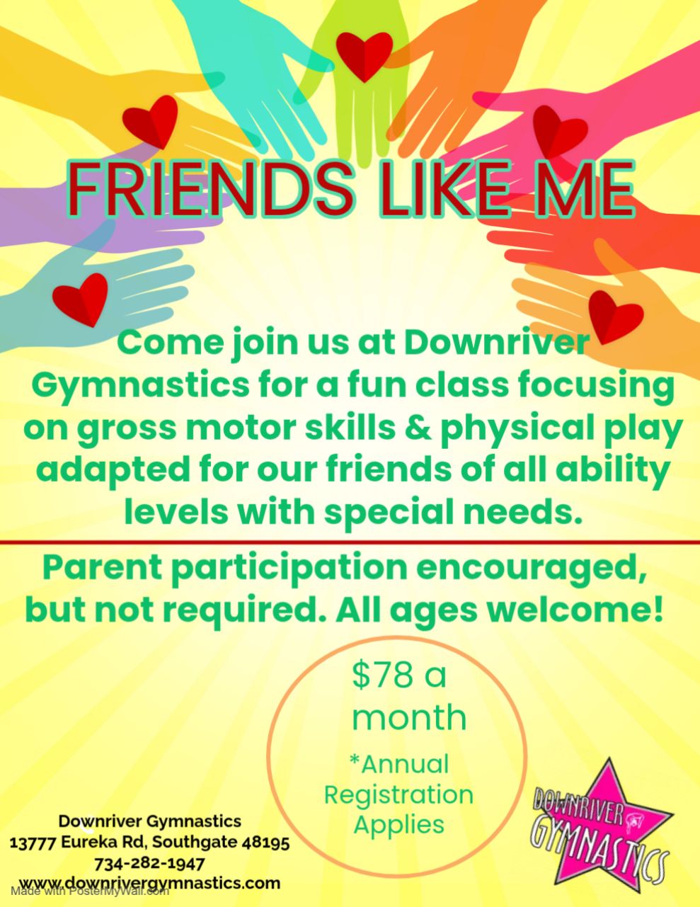 Call 734-282-1947 now to learn more about the gymnastics classes we have to offer.